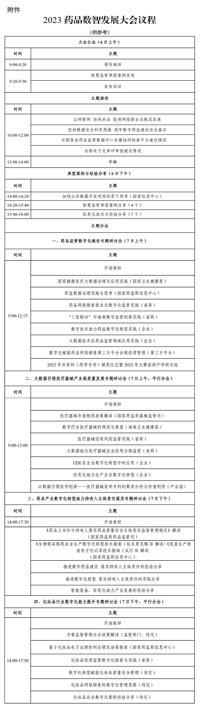 为认真贯彻落实党的二十大精神,深入交流药品监管数据协同治理和数字技术创新应用,提升药品监管精准性和智慧化水平;深入探讨药品产业数字化发展新趋势,推进药品产业数字化智能化转型升级;深入拓展数字化赋能药品产业可持续发展路径,推动数字经济与实体经济深度融合,国家药品监督管理局信息中心(中国食品药品监管数据中心)拟举办“2023药品数智发展大会”。