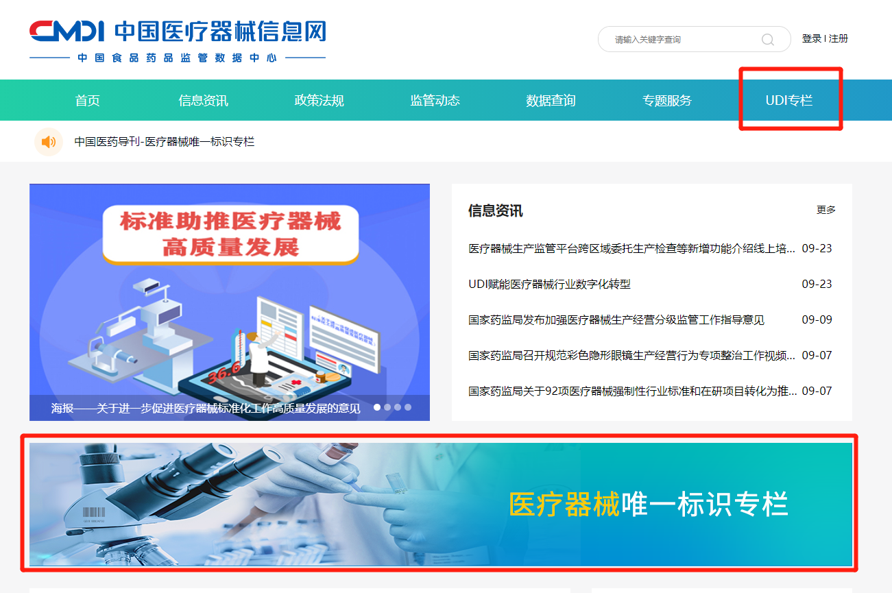 1.打开“中国医疗器械信息网”,点击“UDI专栏”即可访问。2.直接访问专栏地址:https://www.cmdi.org.cn/udiyyhx/,方便您随时访问获取UDI动态信息。