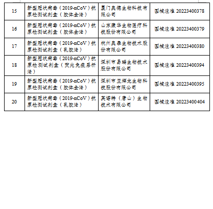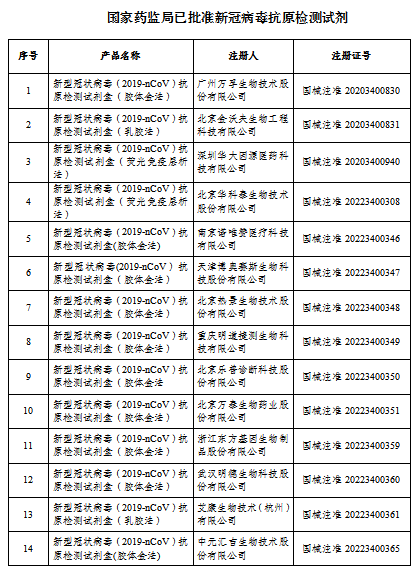 附件:国家药监局已批准的新冠病毒抗原检测试剂